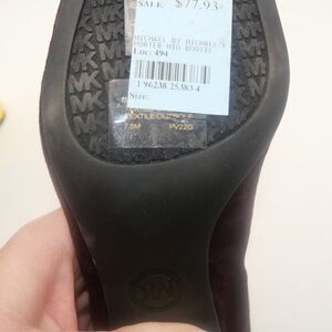 NEW Michael Kors Woman's 7.5 Porter Boots Suede Merlot Burgundy Gold Block Heel