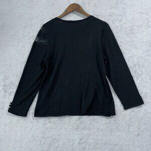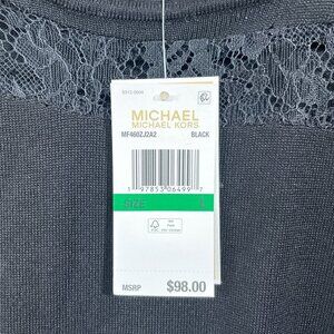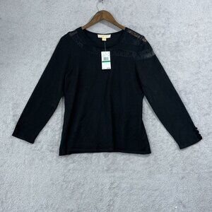 NEW Michael Kors Womens L Crewneck Lace Long sleeve Knit Top Black