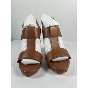 NEW Michael Kors Women's Luggage Leather Becker T Strap Heels Sandal US Size 7.0