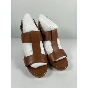 NEW Michael Kors Women's Luggage Leather Becker T Strap Heels Sandal US Size 7M