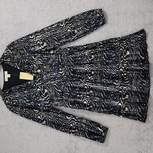 NEW Michael Kors Womens S Pleated Metallic Fit Black Gold Mini Wrap Dress