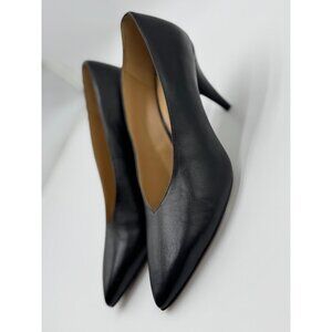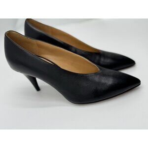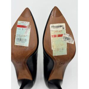 NEW Michael Kors Womens Shoes Lizzy Mid Pump Black Leather Pointed Toe Heels