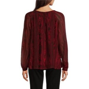 NEW Michael Michael Kors Moire Tie Crew Neck Long Sleeve Top Rhubarb Red