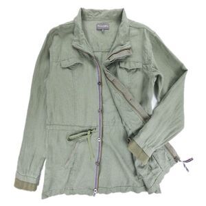 NEW Michael Stars Linen Utility Jacket Button Down Olive Green Minimal Luxury