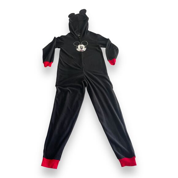 NEW Mickey Mouse Fleece 1-Piece Pajamas Union Suit Medium Disney Hooded w/ Ears