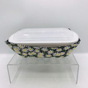 NEW! Microwave Takeout Container Cozy! Reversible, Black Daisy and Dots
