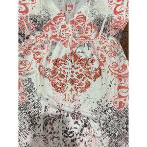 NEW Midi Cover-Up Beach Dress Womens Multicolor L Boho Pink/Brown Stretch