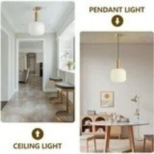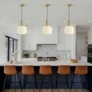 Milk Ribbed Glass Shade Design: The white kitchen lighting fixtures ceiling is made of metal and glass, the lamp body crafted from high-quality metal, feature a gold finish, ensures long-lasting durability and a luxurious look. The lampshade is adorned with ribbed patterns that create a unique and visually appealing lighting effect. The rustic white frosted glass ceiling hanging lamp adding a touch of sophistication to any room, perfect for any style space