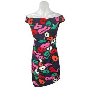 NEW Milly Ally Poppy Multicolor Floral Off The Shoulder Ruched Sheath Dress Sz 2