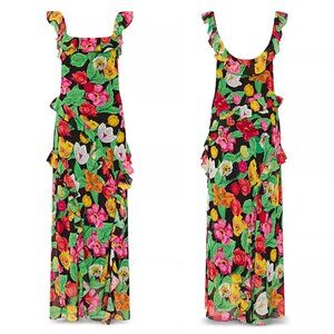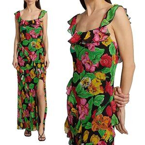 NEW Milly Tulip Rosette Ruffle Maxi Dress Size 8 Black Multi $525 Romantic Fairy