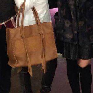 The Toby Tote is the signature leather bag from the Mim & Ray Collection. The intricate braided leather tassels and whipstitching add a unique boho flair. This tote and features a suede leather panel. Will also come with dust bag.