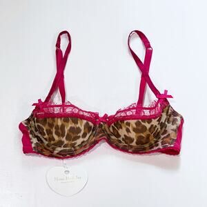 NEW Mimi Holliday 32B Silk Chiffon Padded Bra Leopard Fuschia Lingerie Demaris