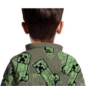 NEW Minecraft Boys Creeper Zip Puffer Jacket Lightweight Size 14 Zippered Size: