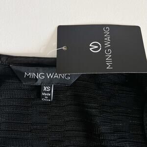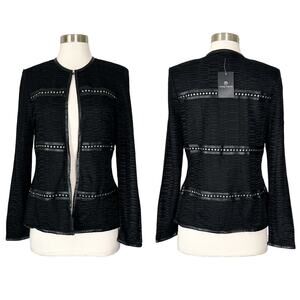 NEW Ming Wang | Black Knit Faux Leather Trim Stud Long Sleeve Cardigan Jacket XS