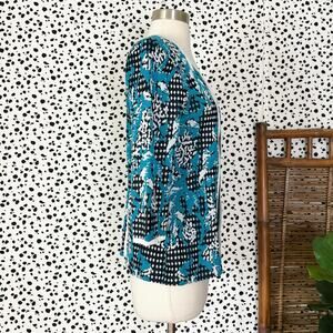 NEW Ming Wang | Blue Knit Black White 3/4 Sleeve Cardigan Work Jacket XS NWT