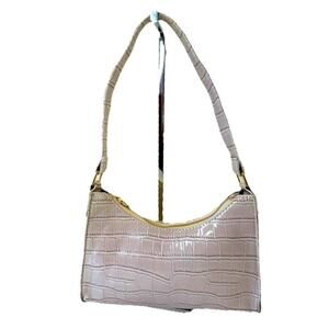 New Mini Bag Faux Leather Handbag Reptile Print Purse, Champagne Cream, Neutral, Vegan, Gold Zip. Unbranded. Small size. See photos for measurements, condition, and details.