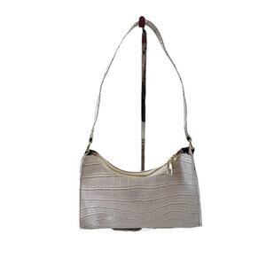 NEW Mini Bag Vegan Leather Reptile Print Handbag Purse Champagne Cream Gold Zip