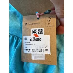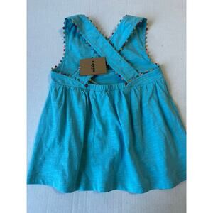 NEW Mini Boden Cross Back Pom Top Blue Sz 6-7