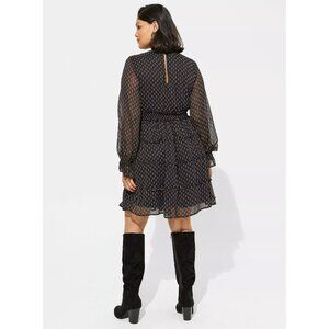 NEW Mini Lurex Chiffon Tiered Dress tiered skirt floral print plus size 3 black /L1