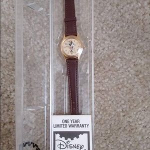 NEW!! Never worn!! Adorable Mini Mouse Watch! Her hands will tell you the time. It has been in the box since purchased in Disney World and needs a new battery. GENUINE LEATHER strap. Perfect condition.