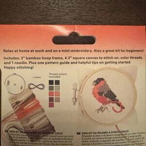 NEW Mini Robin Embroidery Cross Stitch Kit Kikkerland Bamboo Hoop Frame Bird