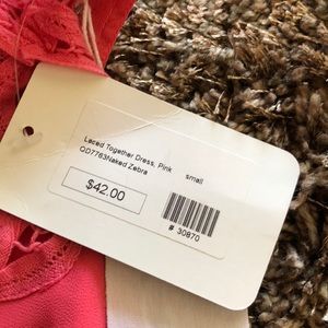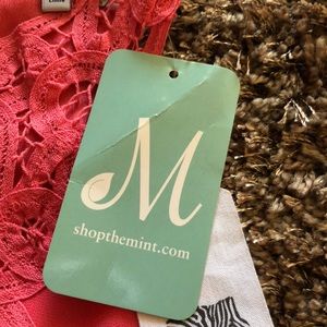 New with tags! Pink dress with lace detail on neck line. Ties at the waist. Purchased from Mint Julep Boutique. Typically l wear a size S in their clothing; however this dress fit snug. l purchased lt with the intentions that lt would be more loose & flowy. For reference, my measurements are 34” 27” 36” with a size 4 in dresses. Definitely recommend for those who are a size 2 or even 0 for a more comfortable fit.