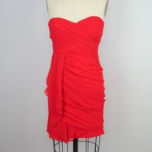 NEW Minuet Tiered Strapless Chiffon Dress Sz S Red Pleated Ruffles Cocktail F04