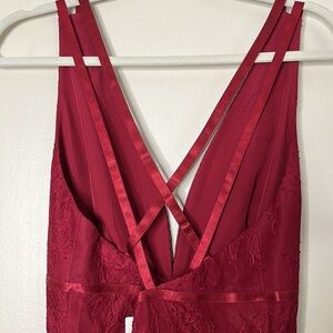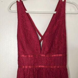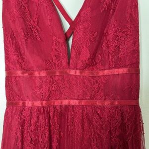 NEW Minuet burgundy sleeveless strappy prom gala formal lacey maxi long gown