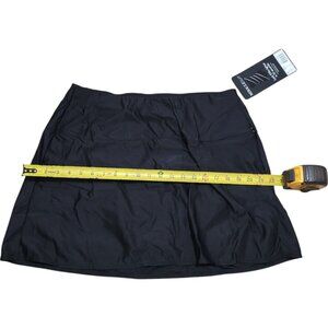 swim skirt, fit and flare, black, solid, 10 lbs lighter, pocket, NWT, women's swimwear, swim fashion, comfortable fit, stylish, beachwear, swim collection, flattering design, tummy control, high-quality fabric, summer essentials, versatile swimwear, poolside, activewear, casual wear, travel-friendly, size options, swim accessories, m