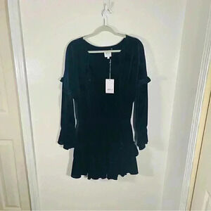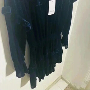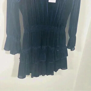 NEW Misa Los Angeles Amalya Dress in Navy Velvet Ruffle Long Sleeve Mini Holiday