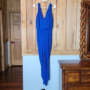 NEW Misa Los Angeles Leza Crossover V-Neck Cocktail Party or Wedding High Low Maxi Dress Royal Blue, Sizes Available are Small or Medium, in NEW with tags condition.