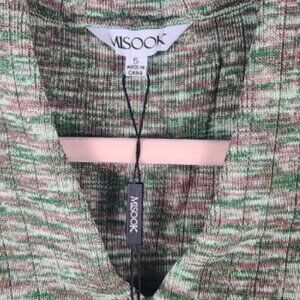 NEW Misook Mini Fit & Flare Green Dress V-neck Pleated Knit Size S MSRP $348 NWT