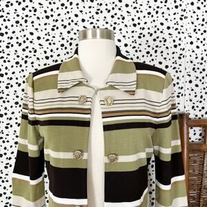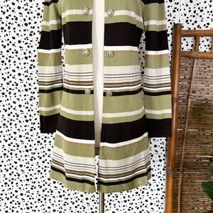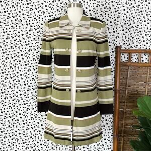 NEW Misook | Striped Brown Green Cream Knit Tunic Length Blazer Jacket XS NWT