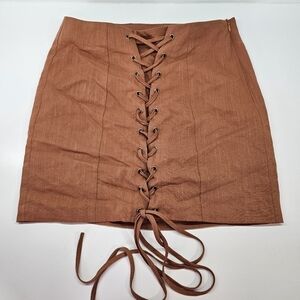 NEW Miss Lola Reddish Brown Lace-Up Tie Front Sexy Mini Skirt Medium