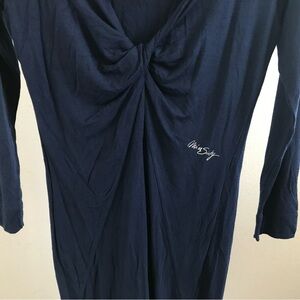 NEW Miss Sixty Twist Front Jersey Knit Dress Size Medium Navy Blue Long Sleeves