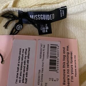 NEW Missguided Cream Crinkle Vest Sleeveless Crop Top Trousers Pajamas Set Sz 8