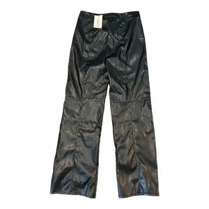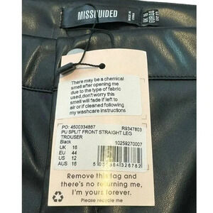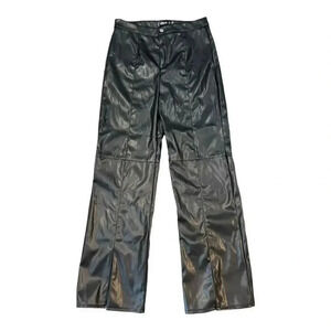 NEW Missguided Size 12 Black Faux Leather Split Front Split Leg Trouser NWT