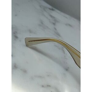 Featuring a thick rim oversized beige clear acetate frame with demo lenses.
