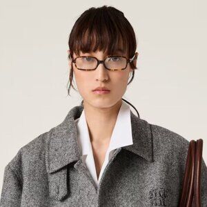 NEW Miu Miu MU11ZS 14L08N REGARD Havana Honey Clear Blue Light Filter Rectangle Unisex Sunglasses SMU11Z