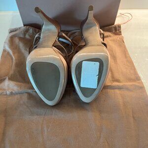 NEW Miu Miu Nude Satin Bejeweled Calzature Donna T-Strap Platform High Heels