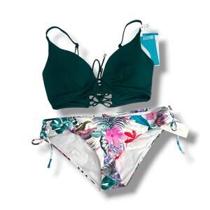 NEW Mix & Match Bikini Set Size Large 36/38C Green Tropical Coco Reef Raisins