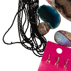 Featuring 70+ packs, this extensive assortment contains hundreds of dollars' worth of merchandise, including vibrant beads in various shapes, sizes, and materials, along with clasps, necklace chains, and semi-precious stones, rings and earrings. Perfect for jewelry enthusiasts, crafters, or beginners, this set provides endless possibilities to design unique, one-of-a-kind pieces for personal use or gifts.