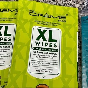 Lashes, smudge brush, makeup bag, eyeshadow palette, eyeliners, makeup wipes.