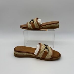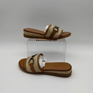 NEW Miz Mooz Leather and Raffia Slide Brandy Sandals EUR37