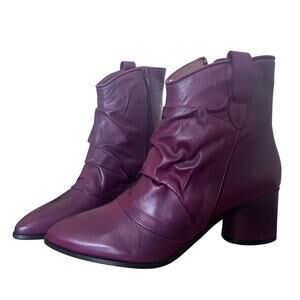 NEW Miz Mooz Women's Red Burgundy Leather Ruched Ankle Boots Jared Block Heel 42