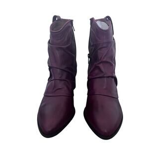 NEW Miz Mooz Women's Red Burgundy Leather Ruched Ankle Boots Jared Block Heel 42 US 10.5-11