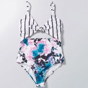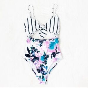 NEW ModCloth Sienna Striped Floral Tie Front One Piece Swimsuit