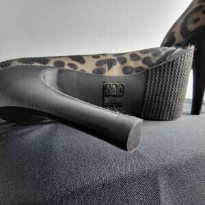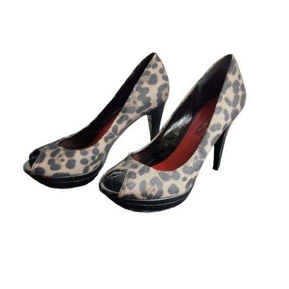 NEW Moda Spana Heels Peep Toe Sz 7.5 Animal Print Black Tan Shoes Classic Sexy