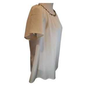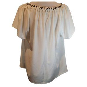 NEW- Modamix White Short Sleeved Blouse with Bead & Rhinestone Size XL