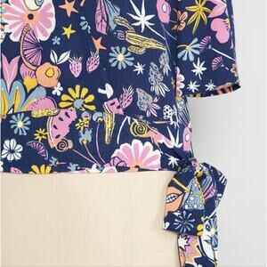 Modcloth Best Is Yet To Come Graphic V-Neck Wrap Top - Navy Blue Print - Women's Size XSmall (XS) - NWT